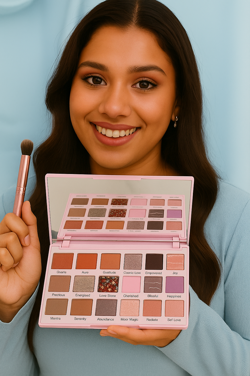 A stunning palette featuring 18 shades in matte and shimmer finishes. From soft neutrals to highly pigmented Smokey tones, it’s perfect for creating endless looks — natural, glam, or anything in between. The smooth buttery formula blends easily for the perfect look suitable for all skin tones.